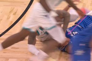 很隐蔽!双方倒地争球 小桥趁乱按了贝恩一拳!被吹技犯