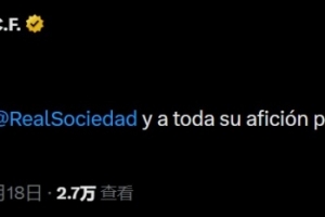 皇马官方发文:祝贺皇家社会及其所有球迷夺得国王杯冠军