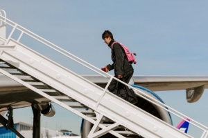 全新体验!开拓者登机照 杨瀚森背着粉色书包 开启首次季后赛之旅